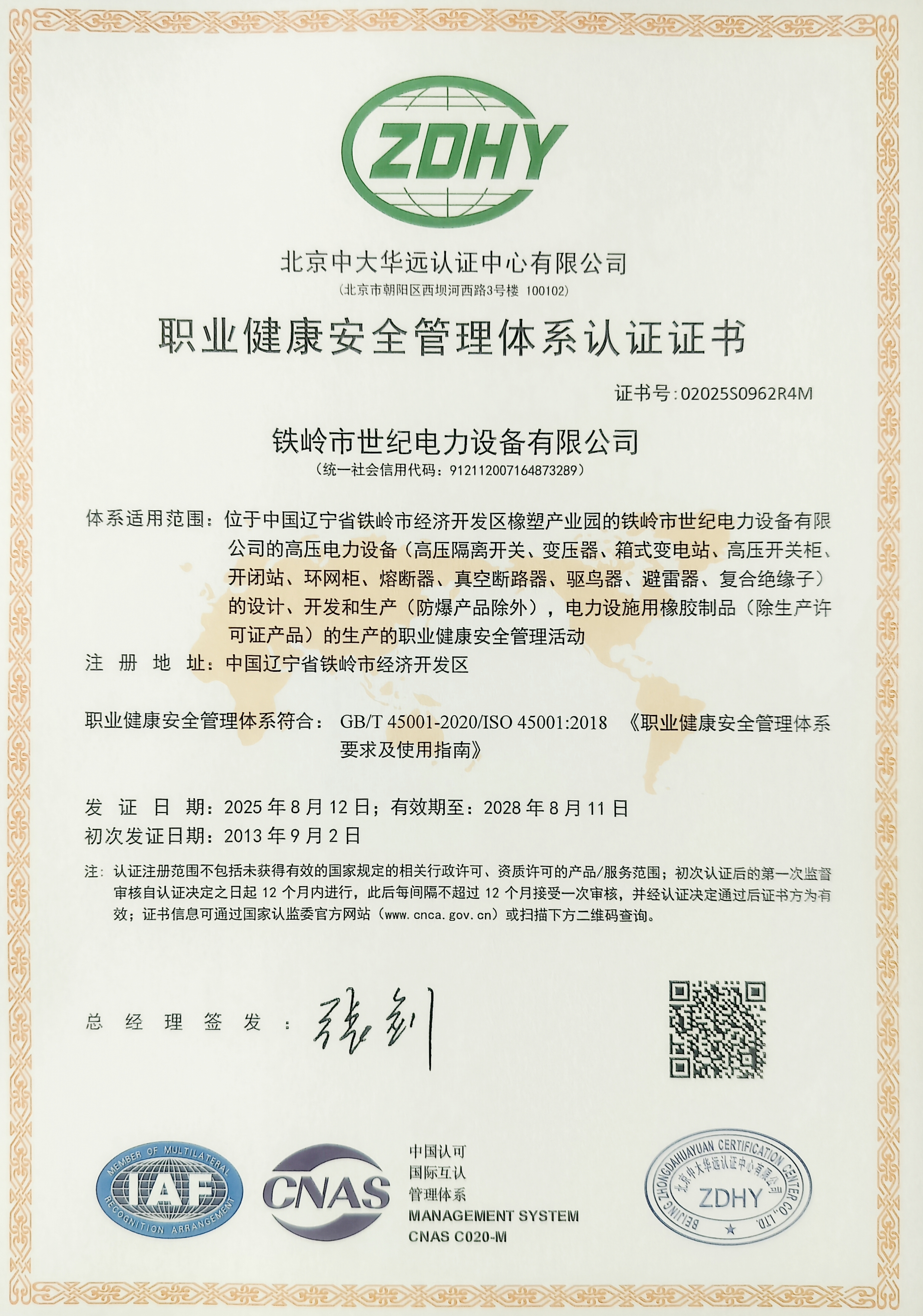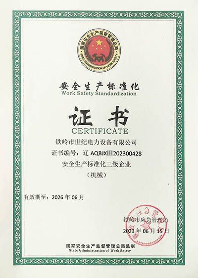 鐵嶺市世紀電力設備有限公司是集科研開發(fā)、生產制造、用戶服務于一體的國家高新技術企業(yè),始建于1999年,位于鐵嶺經濟開發(fā)區(qū),占地面積5萬余平方米,建筑面積2萬余平方米。主要從事國家電網配套戶外高低壓隔離開關、電力電纜、變壓器成套裝置、高低壓開關柜、箱式變電站、絕緣子等產品的研發(fā)、生產和銷售。公司現(xiàn)有國家發(fā)明專利6項、實用新型專利9項,公司通過了ISO9001國際質量管理體系認證、ISO14001環(huán)境管理體系認證和ISO 45001職業(yè)健康安全體系認證。